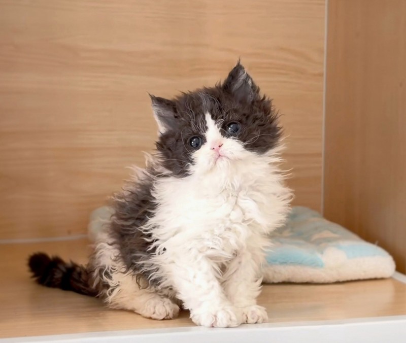 국내에서 찾을 수 없는 퀄리티의 블랙 바이컬러 곱슬털 푸들 고양이♡